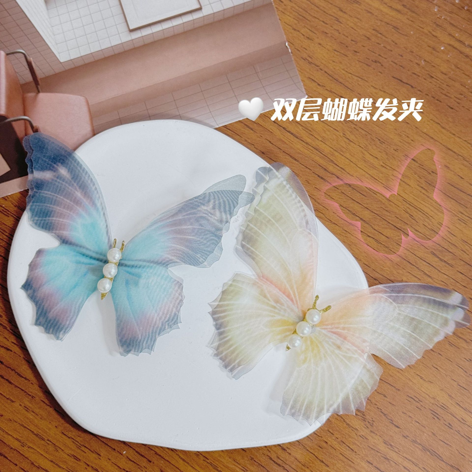 仙気霊動網紗蝶ヘアクリップ女性写真高級感真珠サイドクリップヘアピン古風気質髪飾り