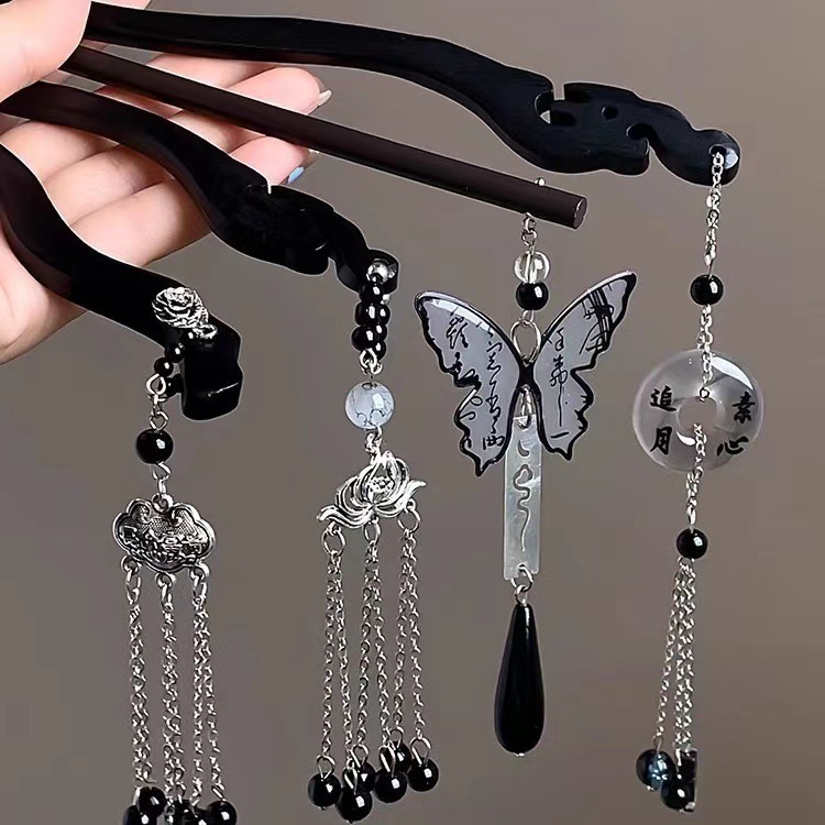 新古風木製ヘアピン高級感蝶流蘇ヘアピン漢服ヘアピン新中国式百合髪飾り