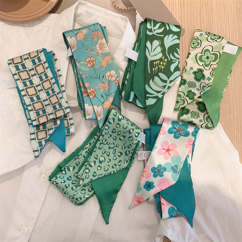小清新な緑の色の色の白い多機能の小さいスカーフの女性の新型の長いストライプのリボンは髪を縛って小さいスカーフを飾ります。