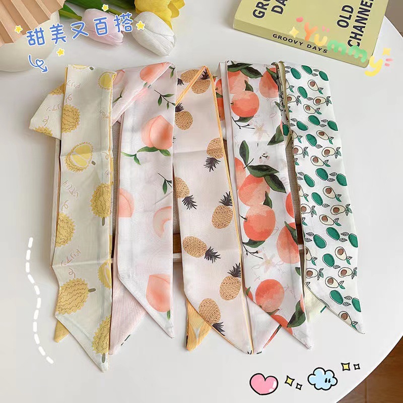 夏の小清新な果物のシルクタオルのヘアバンドが可愛いです。