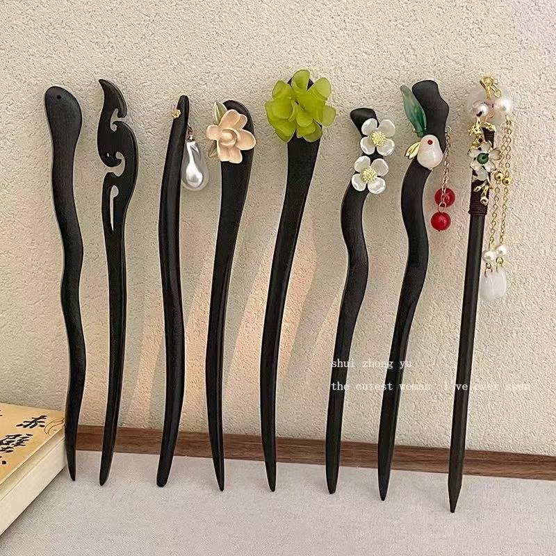 柿如意 ~ 黒檀の髪のかんざしの女性の古風な高級感の木造の髪のかんざしのチャイナドレスは頭飾りを飾ります。