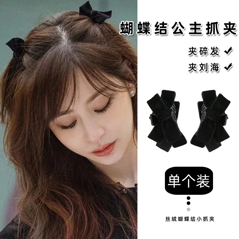 王心凌は同じタイプの黒いベルベットの蝶結びの髪を挟んで、前髪を挟んで、夏のお姫様の頭を挟みます。