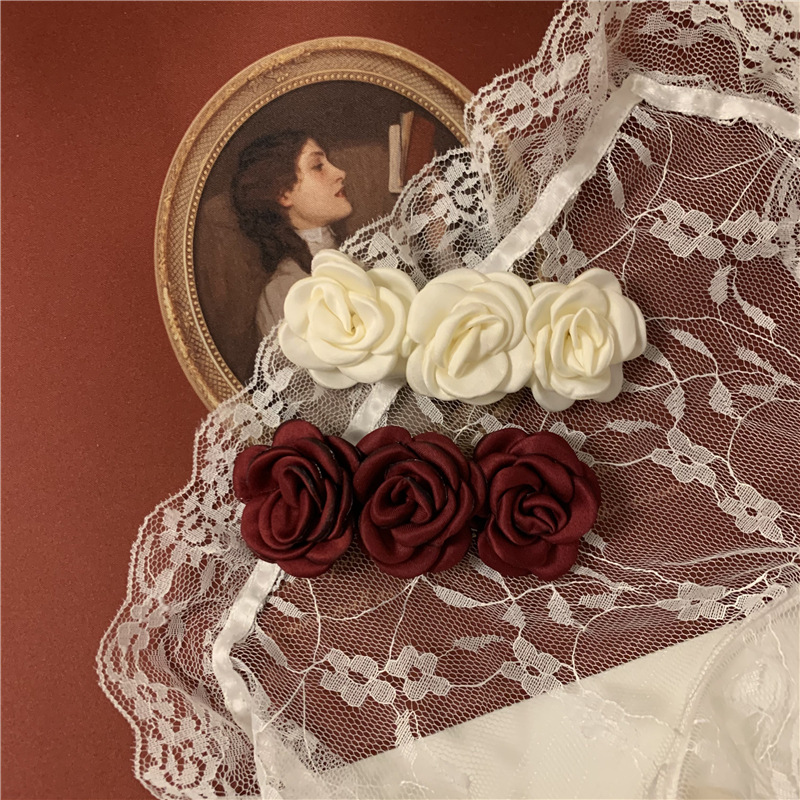 秋の新商品のレトロな赤いバラの髪は女性の仙気のオリジナルの立体の花のスプリングを挟みます。
