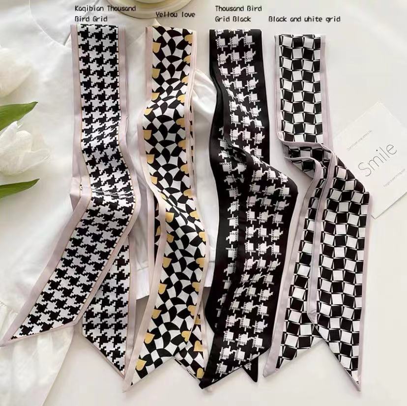 韓国の小香風白黒のシルクタオルの女性の細くて狭いです。