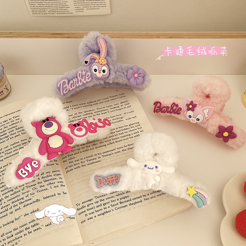 秋冬のぬいぐるみ金属クリップ固定高馬尾ファッションシンプルなクリップ韓国文芸高級毛玉頭飾り