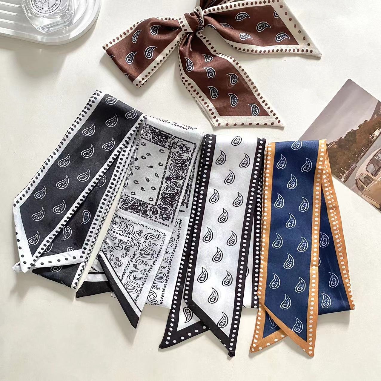 レトロ百合腰果花シルクタオル百合通勤髪束長条リボン気質装飾スカーフリボン女