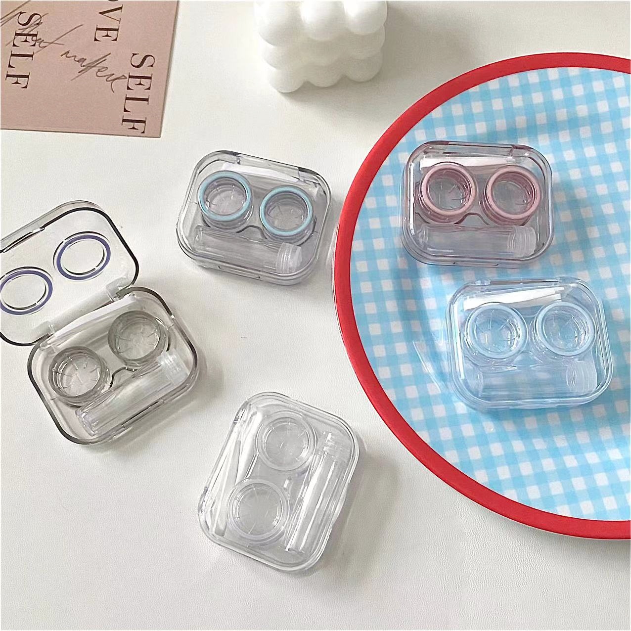 シンプルでかわいい鏡付き携帯コンタクトレンズケースins風美瞳カップルケース収納看護ダブルケース