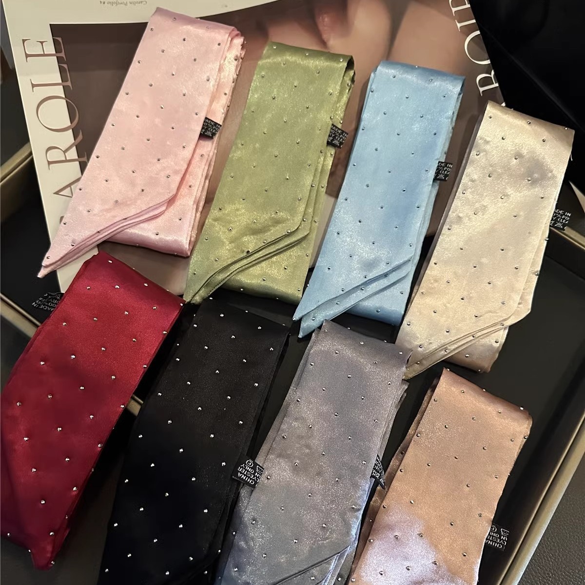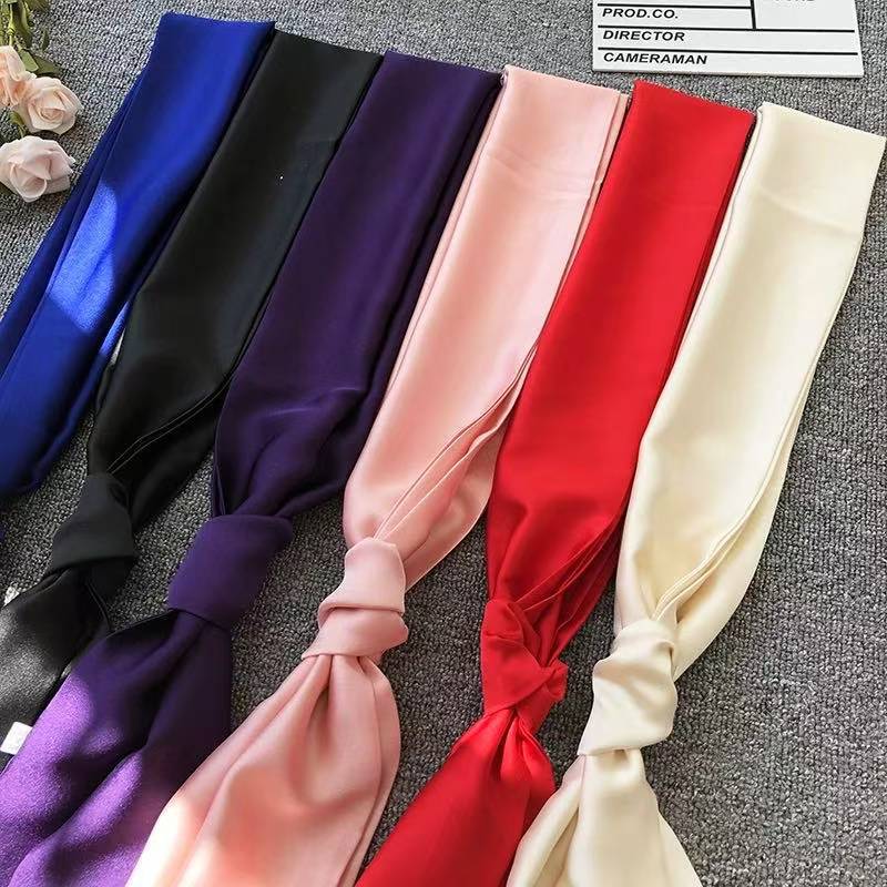 夏の韓国の新しい無地の小さなシルクスカーフ模擬シルクヘアネクタイバッグ帽子装飾ストリーマーネックスカーフ