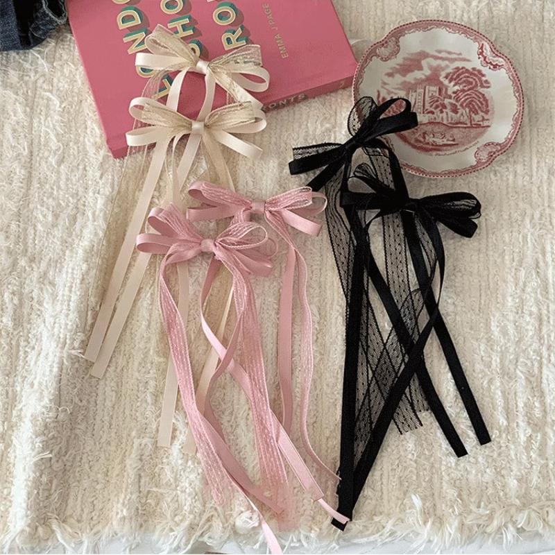 新作バレエ風蝶結びヘアクリップ女性可愛いピンクのレースリボン