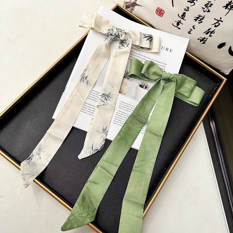 韓国版ins純色の細い長いスカーフのサテンの気質の蝶の結紮の髪のリボンの百掛けの小さいスカーフのリボン