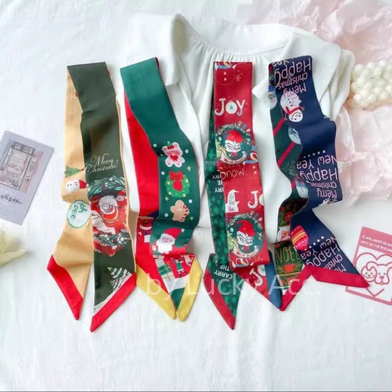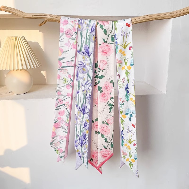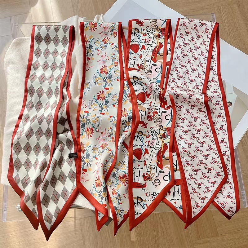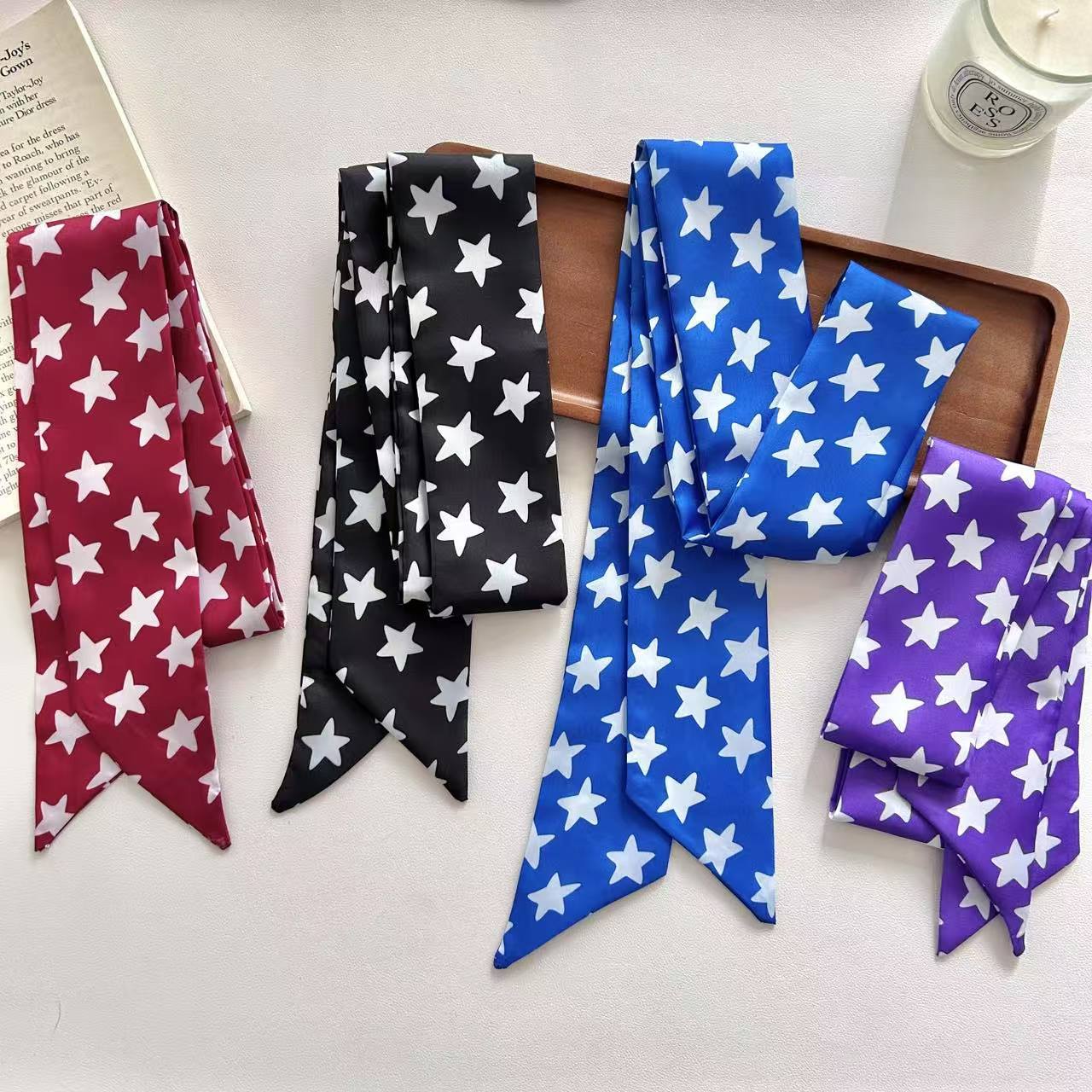 韓国の新しいスタープリントシルクスカーフロングy2kホットガールネックスカーフヘアタイバッグリボン装飾リボン