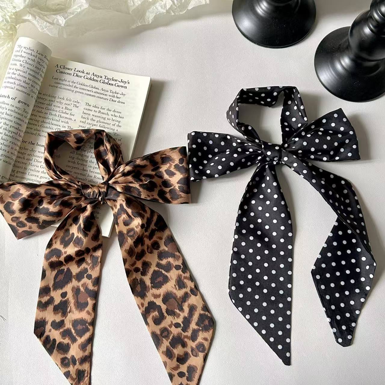 アメリカのギャルのヒョウの紋様のスカーフの女性の甘いクールな百合の波の点の小さい糸のリボンの気質の装飾のスカーフの手首のスカーフのベルト