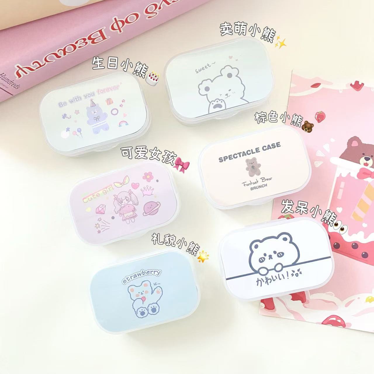 Insシンプル携帯コンタクトレンズケースかわいいアニメ美瞳カップルケース看護ケース鏡付き看護ケース