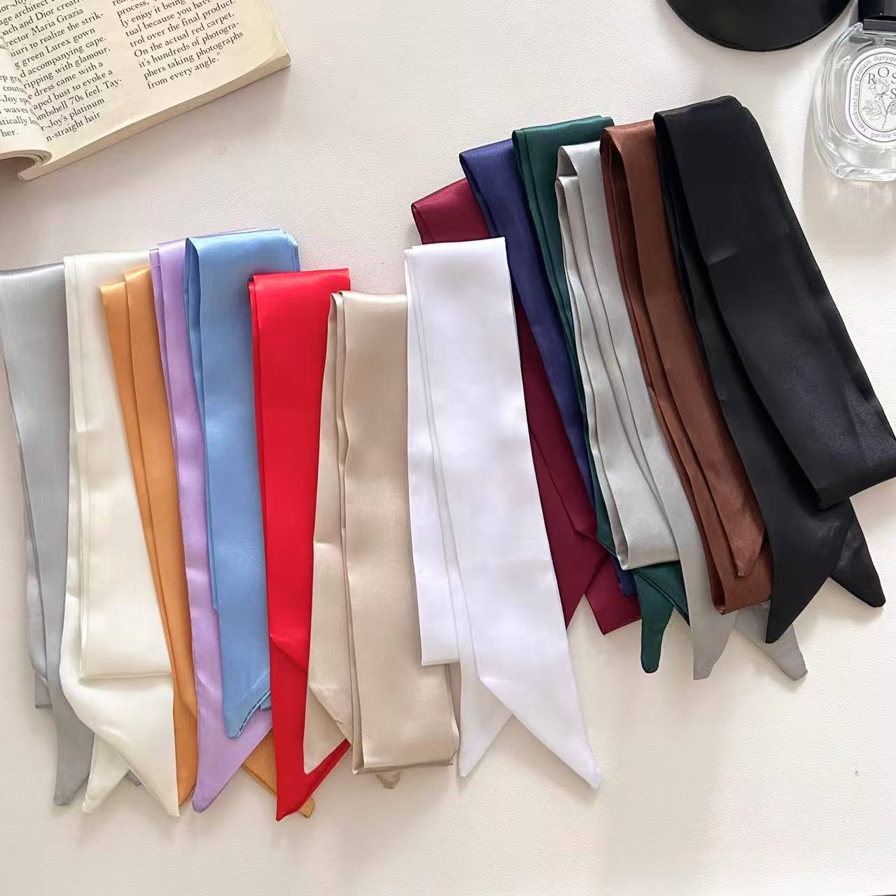 韓国系の純色のシルクタオルはシンプルで、蝶々の結紮ヘアバンドの新しい長条の細いリボンです。