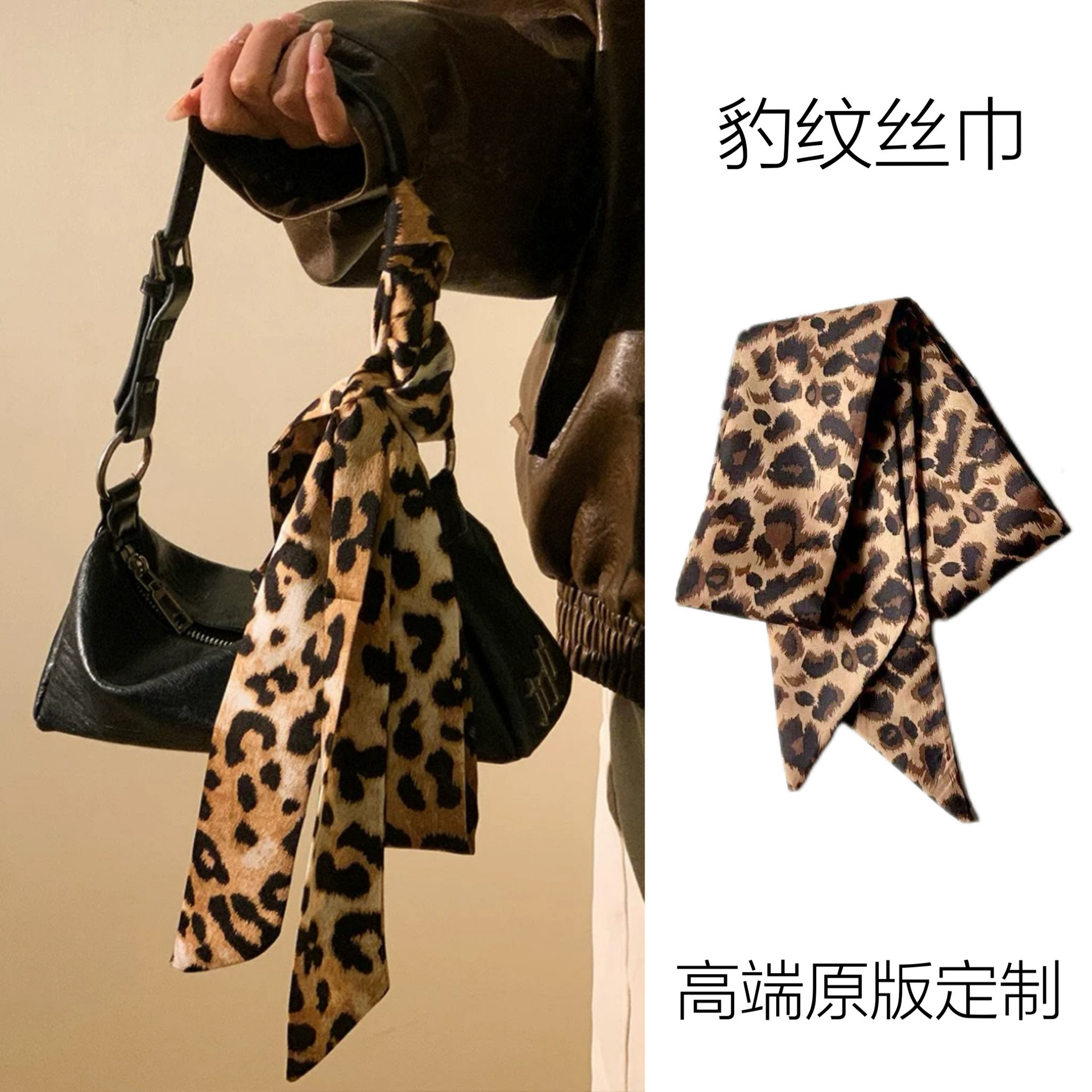 早春の新型百合豹紋プリントシルクタオル千年風ギャル小衆復古多機能髪リボンタオル