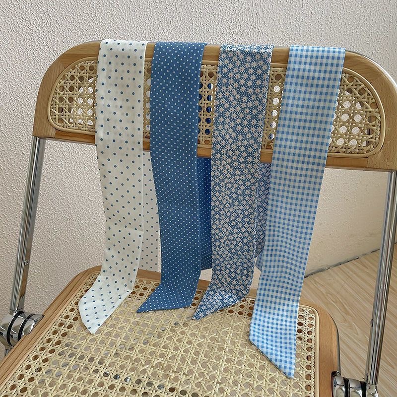 2025年新作韓国風雰囲気水玉シルクスカーフ夏の爽やかなブルーネックスカーフヘアタイバッグリボン