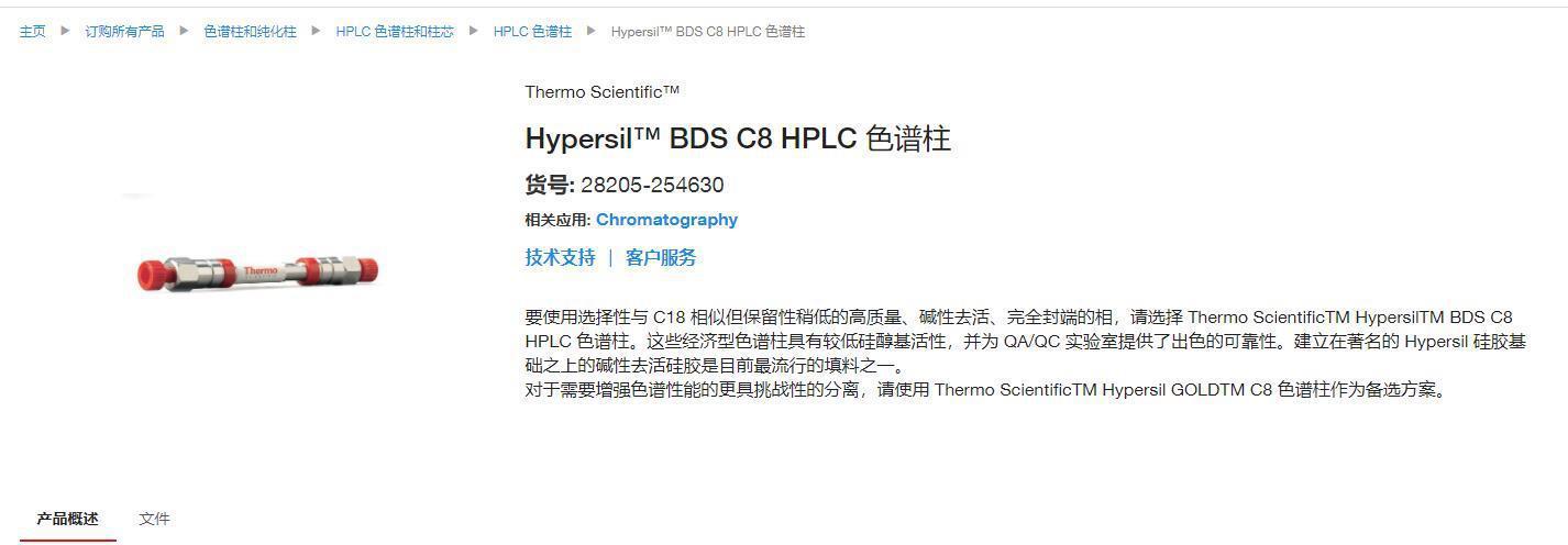 サーモフィッシャーサイエンティフィック ™ BDS C8 HPLC カラム アルカリ性無効化シリカゲル カラム 28205-254