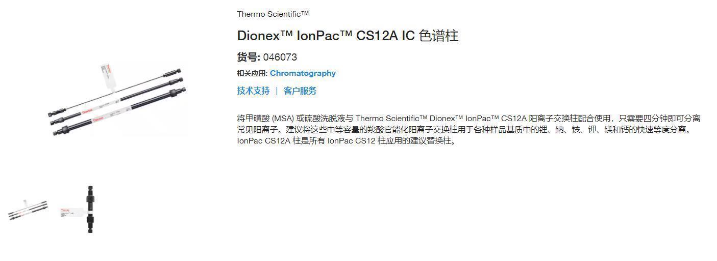 Dionex ™ IonPa CS12A IC カラム カルボン酸機能化カチオン交換カラム