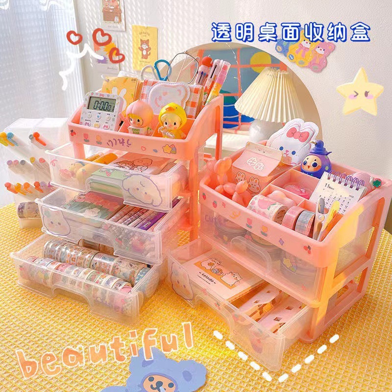 かわいいアクセサリー収納ケースジュエリー頭飾りデスクトップ文房具化粧品ケース女子学生引き出し式机整理