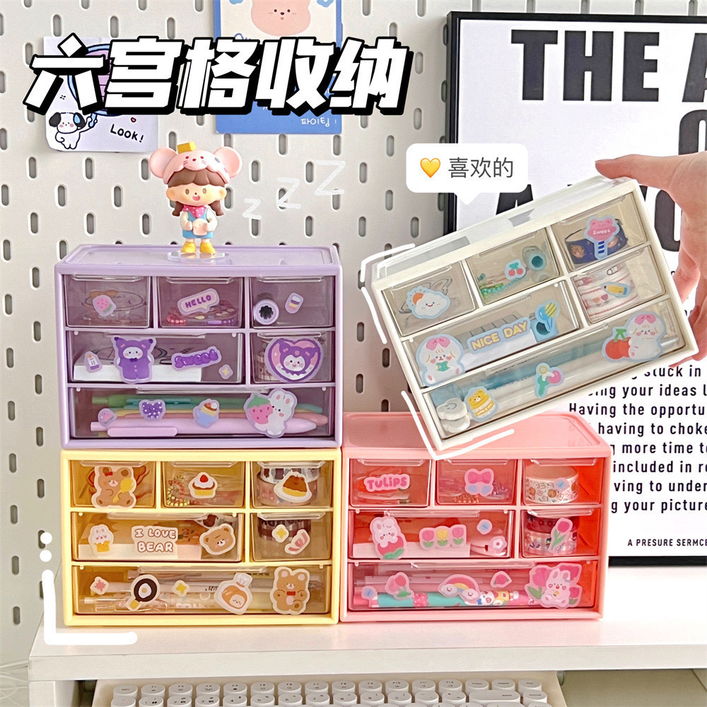 大六宮格収納ケース手帳収納小物デスクトップ引き出し式分格可愛いアクセサリー美瞳収納ケース