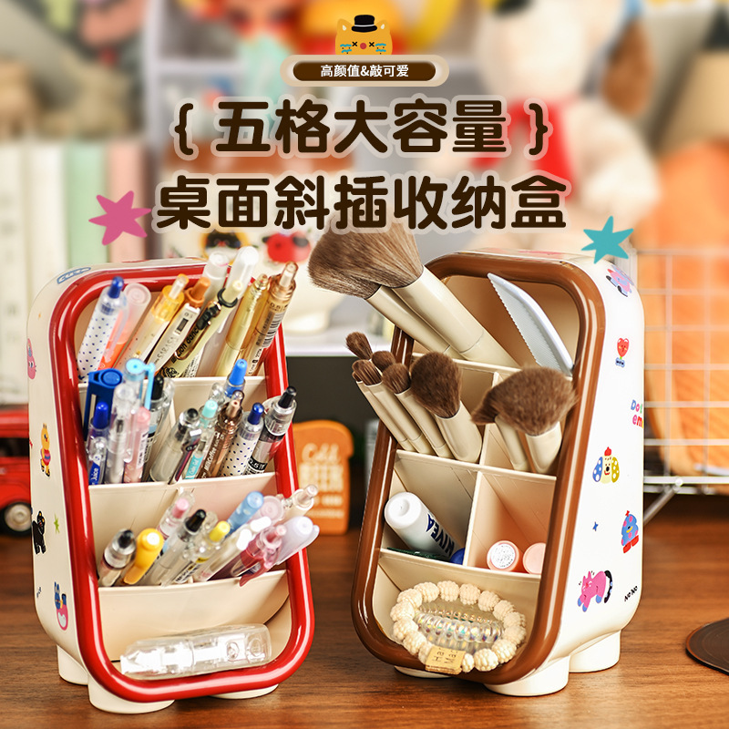 ドーパミンデスクトップ斜め文具化粧品収納ボックスかわいい漫画ペンホルダー学生オフィスペンボックスイン女性