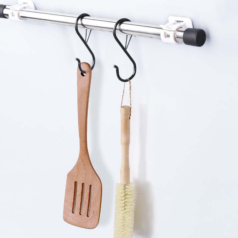 壁掛け収納ラックフックパンチフリーキッチンフックラック吊りロッドバスルームタオルラックドアカーテンロッド固定クリップ