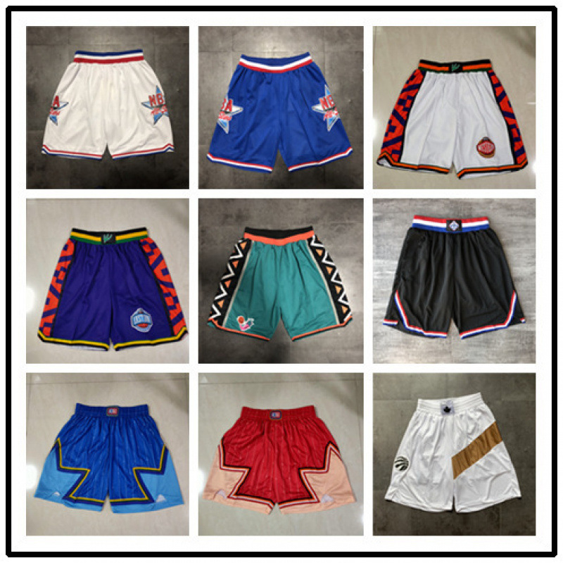 バスケットボールパンツ卸売サンズレイカーズ76人ホーボスラプターズマジックポケット密刺繍ショーツレトロバスケットボールパンツトレンディ