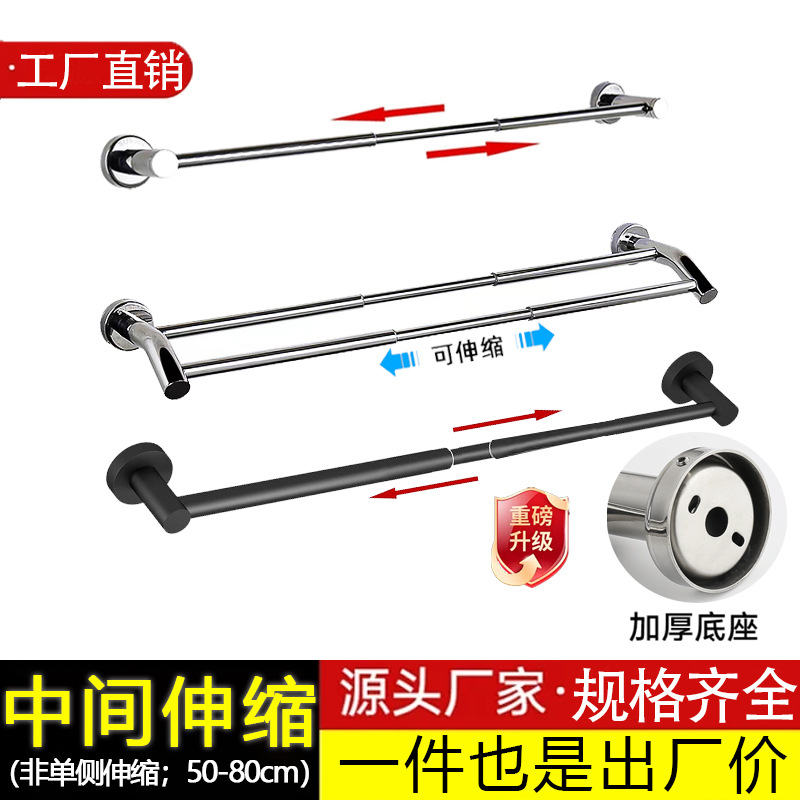 新しい 304 ステンレス鋼伸縮性タオルバー浴室パンチフリーシングルロッドダブルロッドバスタオルラック伸縮式壁掛け