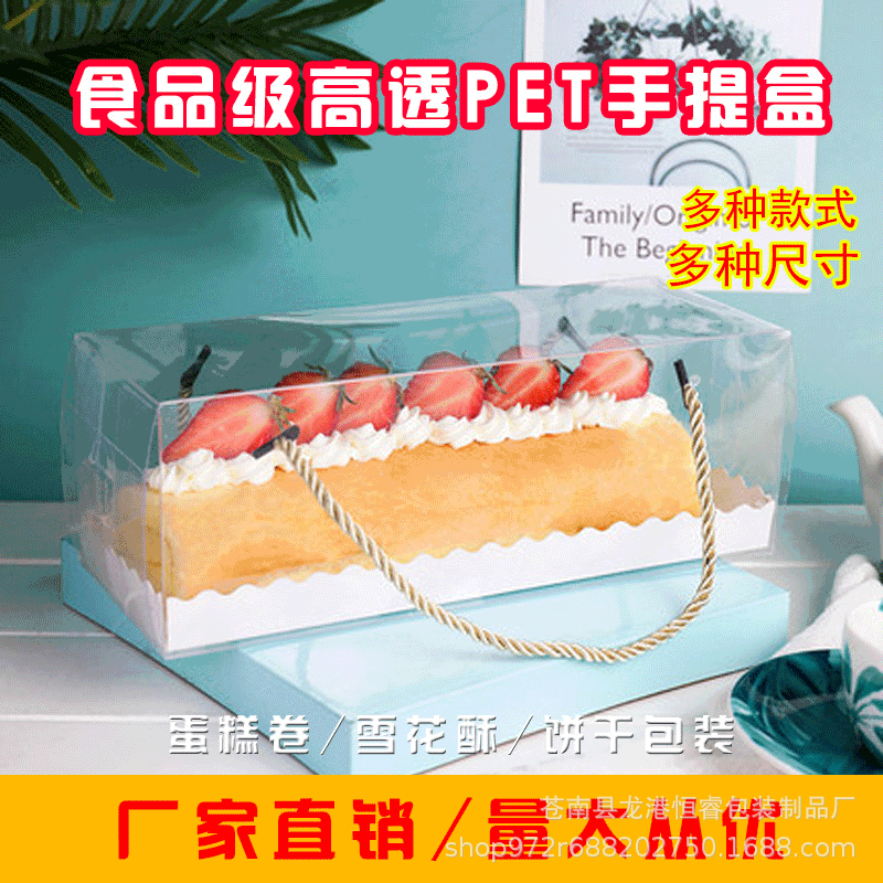 現物透明手提げ中号ケーキ巻き包装箱pet環境保護プラスチックケーキ箱スイス巻き箱デザート箱