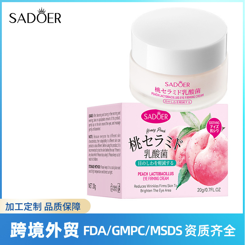 英語のSADOER桃乳酸菌の目の部分はクリームを締めます。