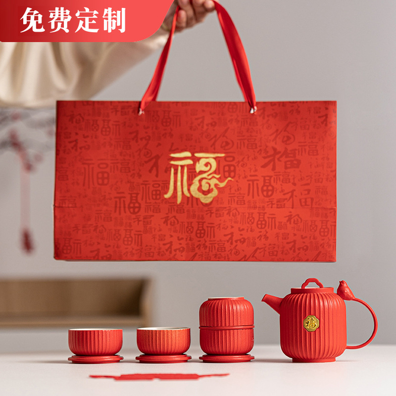 文創万事如意旅行茶道具快客杯セット創意新婚プレゼント新人年会プレゼントオーダーメイド