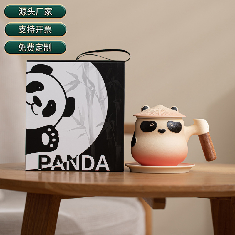 パンダコーヒーカップ皿付きクリエイティブマグカップ蓋付きビジネスオフィスカップお土産カスタムロゴ