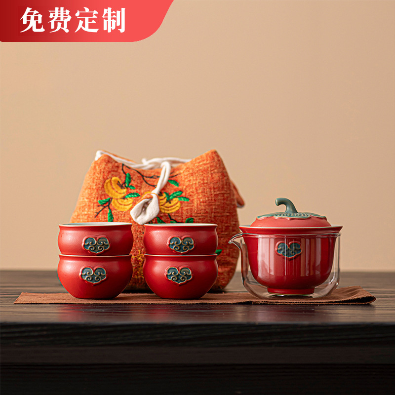 携帯旅行茶器セット快客杯一壺三杯の工夫蓋碗高級お土産オーダーメードlogo
