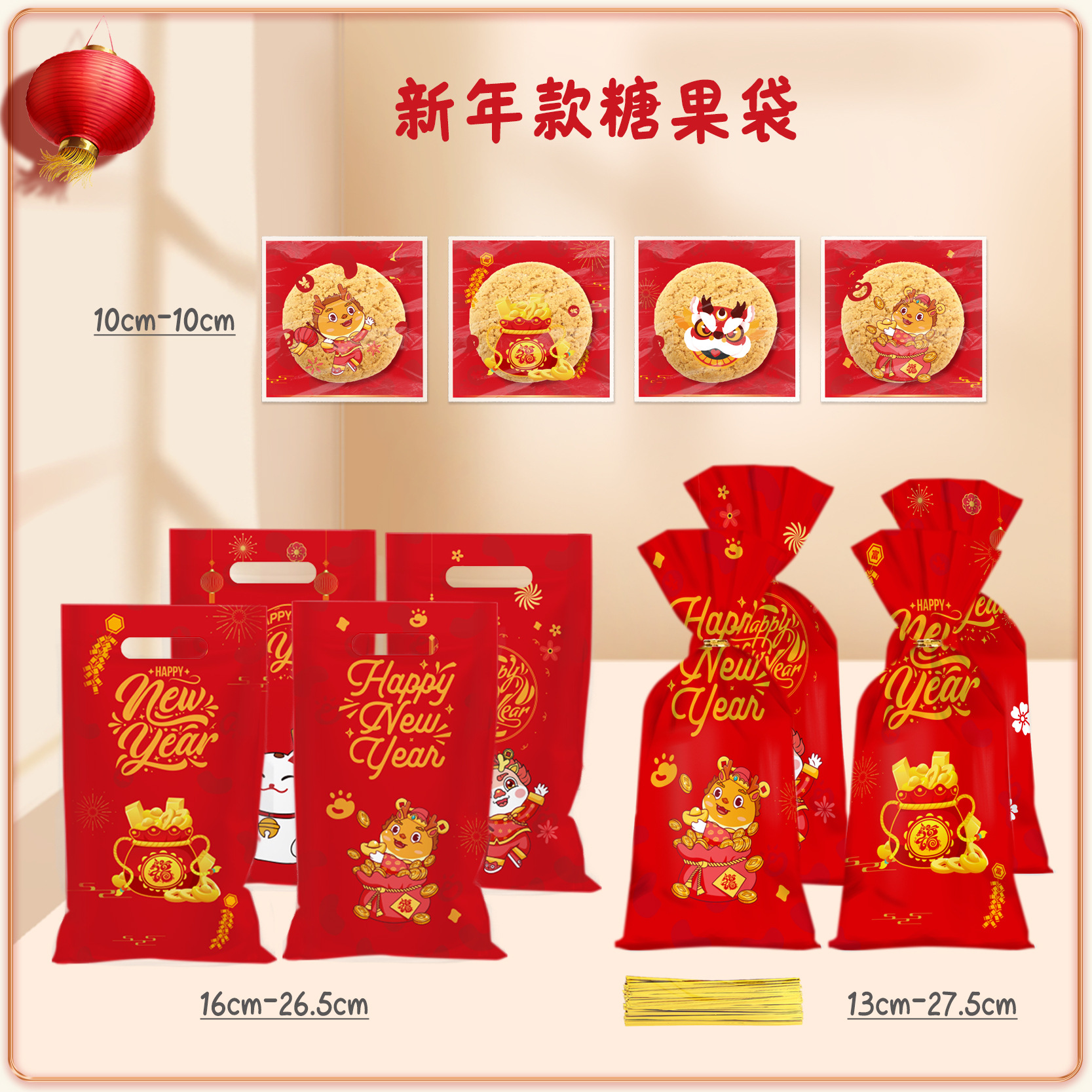 オリジナル新年キャンディーバッグ子供パーティーギフトバッグ龍年牛圧延砂糖クッキーバッグ新年赤いギフトバッグ