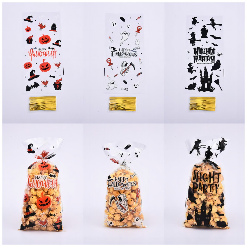 2025年ハロウィンクッキーヌガー雪片菓子キャンディ包装袋ハロウィンパーティーギフト粘着袋ベーキング