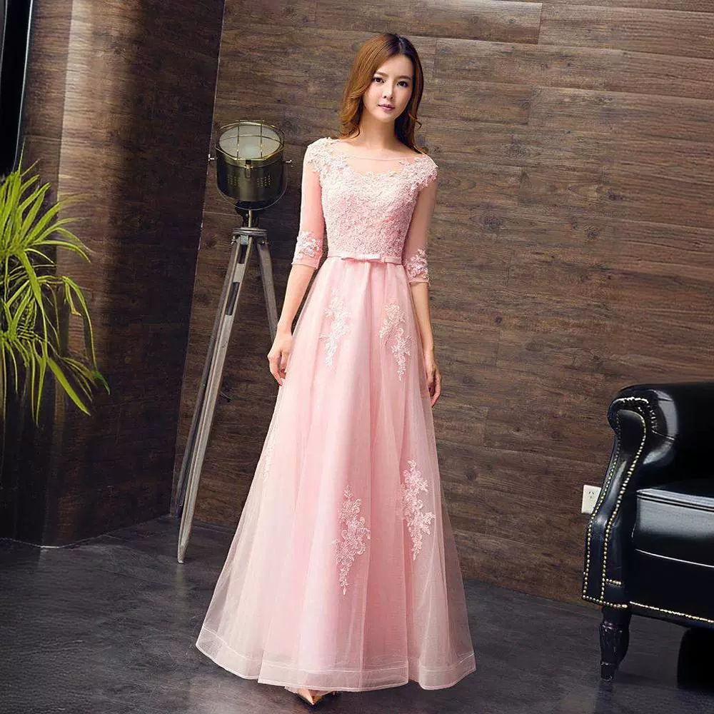司会者のドレススカート女性のロングスタイルの気質ピンクの花嫁服2023新作詩朗読大合唱団公演服