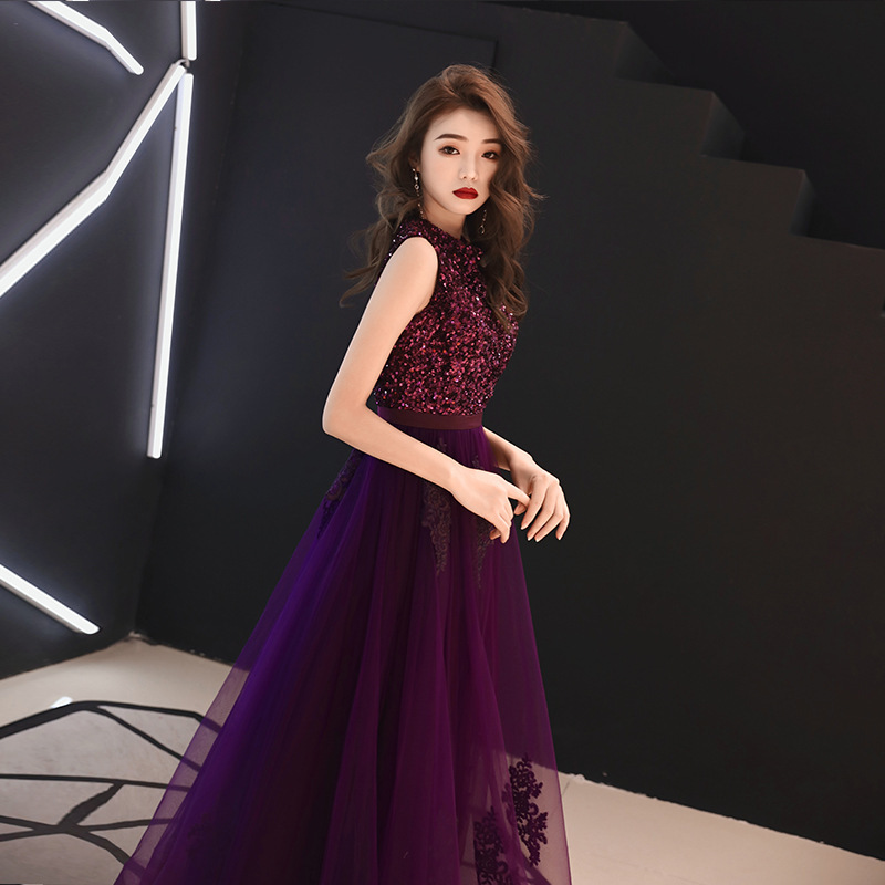 タキシードの女性のハイエンドの声楽芸は学生の日の成人の贈り物の紫色の逃亡する王女の婚約の敬酒服の花嫁を試験します。