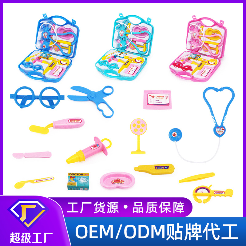 子供のままごとの医療道具セットの収納箱をカスタマイズします。男の子と女の子のプレゼントは医者のおもちゃセットです。