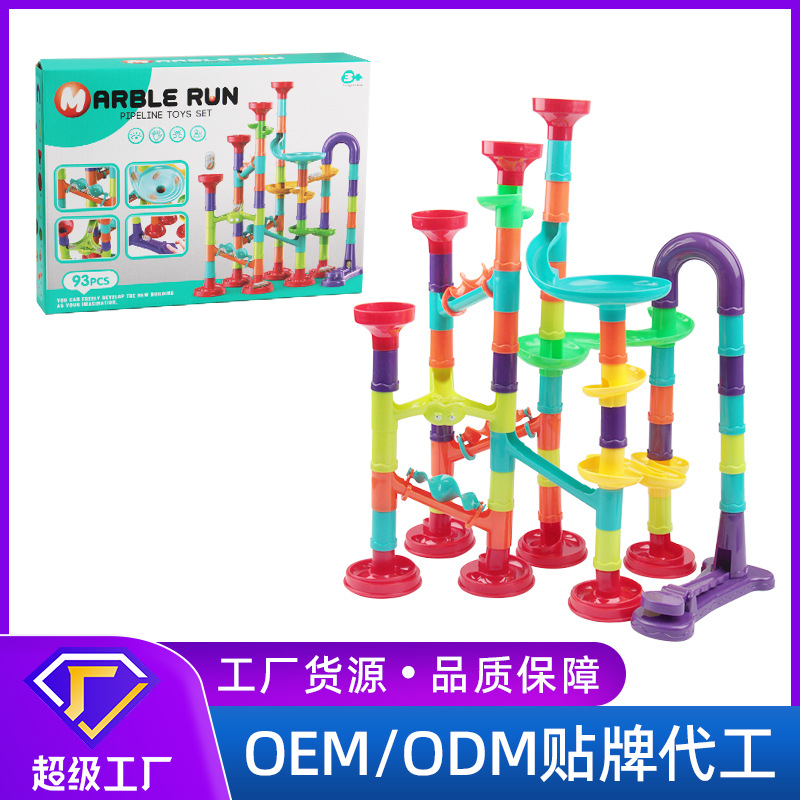 国境を越えた新型3d軌道ボール積み木立体迷宮配管diy組立113pcs発射ボール積み木