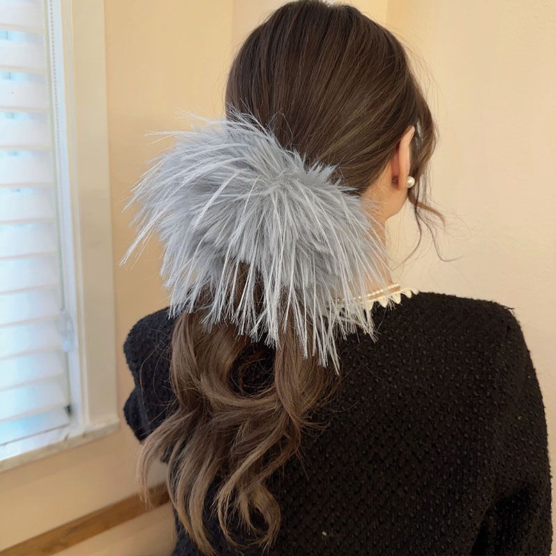 羽毛の後頭部の髪輪の女性の秋冬の髪輪のネットのネットの赤い2023年の新型の髪のダチョウの毛の髪輪のぬいぐるみの頭飾り
