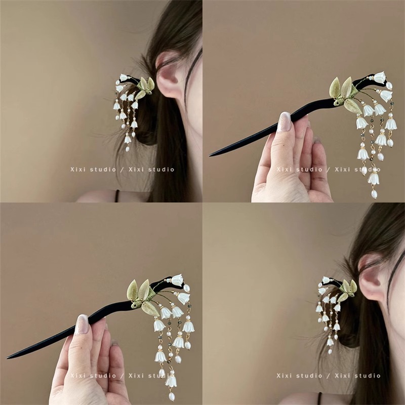 清新な白いすずらんの歩はかんざしの高級感の国風のチャイナドレスを揺らします。