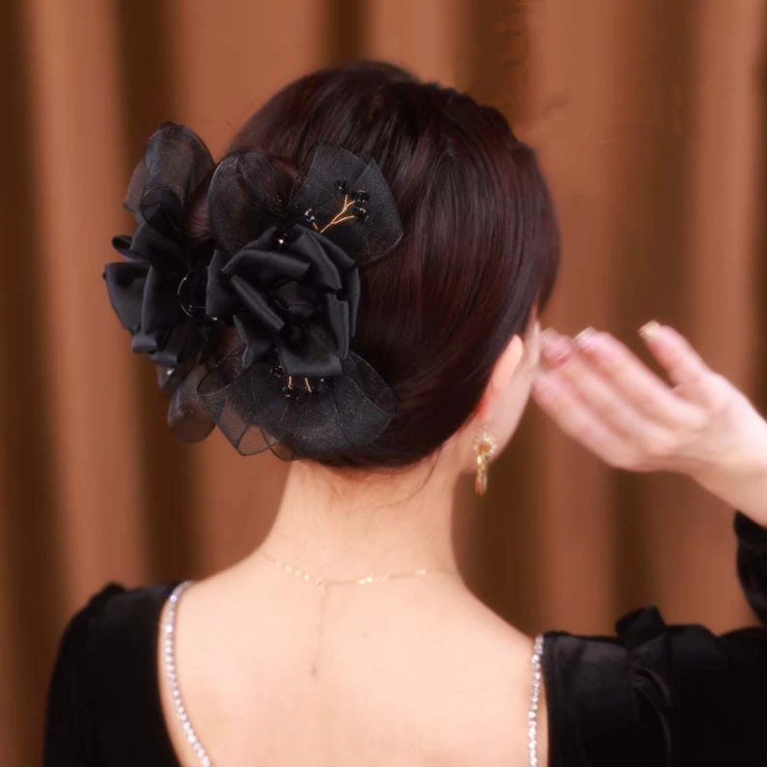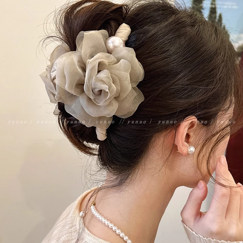 フランスの優しい花のヘアピンの女性の後頭部のネットの赤い大きいサイズは高級感のサメを挟んで2025新型を挟みます。