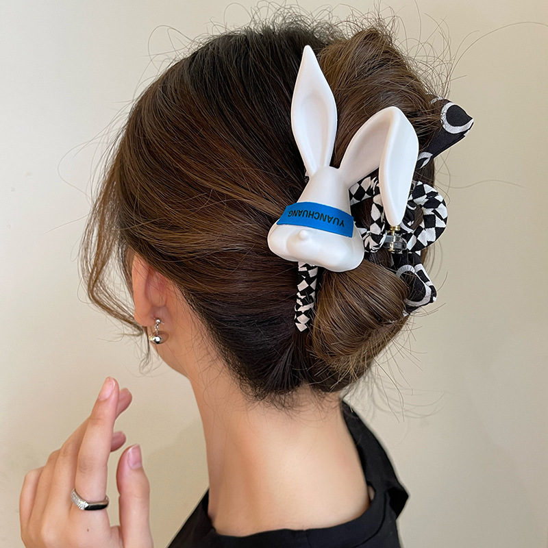 かわいい紳士は耳を折ってウサギの髪を挟んで後頭部の高級感をつかんで女性の大きいサイズのサメを挟んで簡単な蝶結びの頭飾りを挟みます。