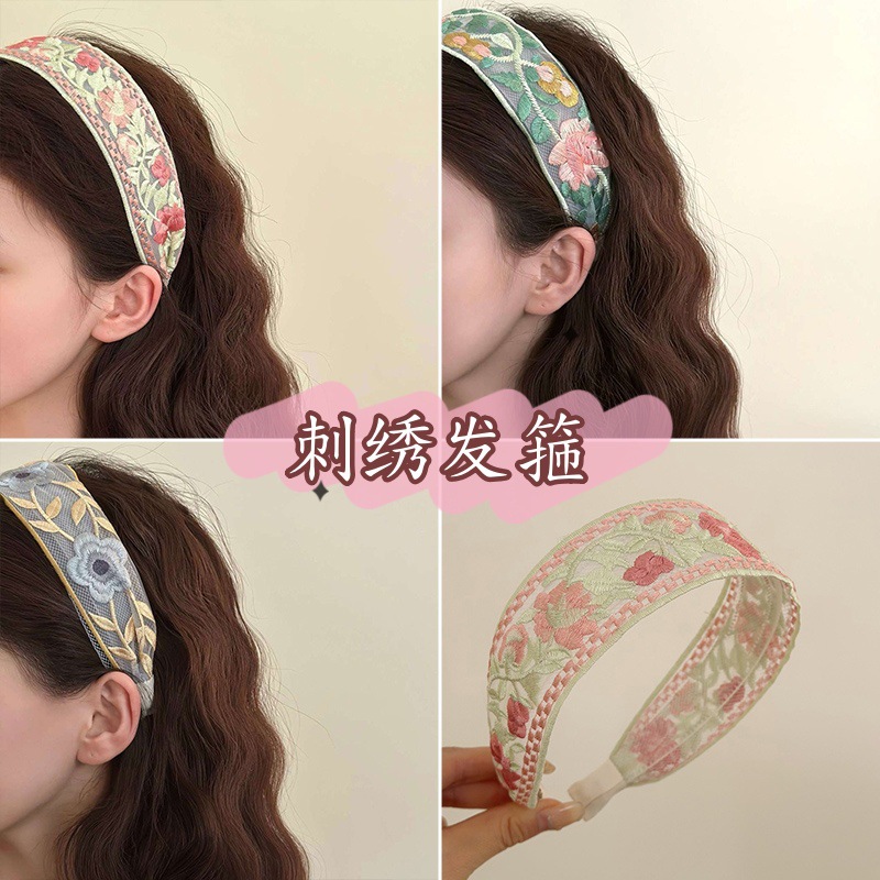 田園風レトロ刺繍花カチューシャ髪飾り女性高級感新中国風花高頭トップカチューシャ髪飾り夏