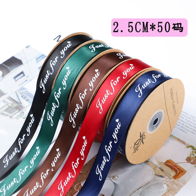 2.5CMリボン 英語文字 38ヤード リボン サテンリボン 卸売 ギフト 花 果物バスケット 包装リボン DIY ローズフラワー