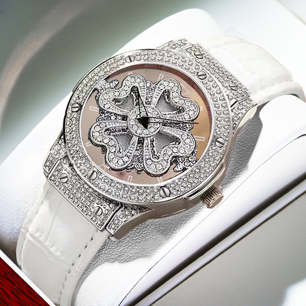 時来運転回転腕時計レディース非全自動腕時計大文字板満天星水ドリル本革ファッション女性時計