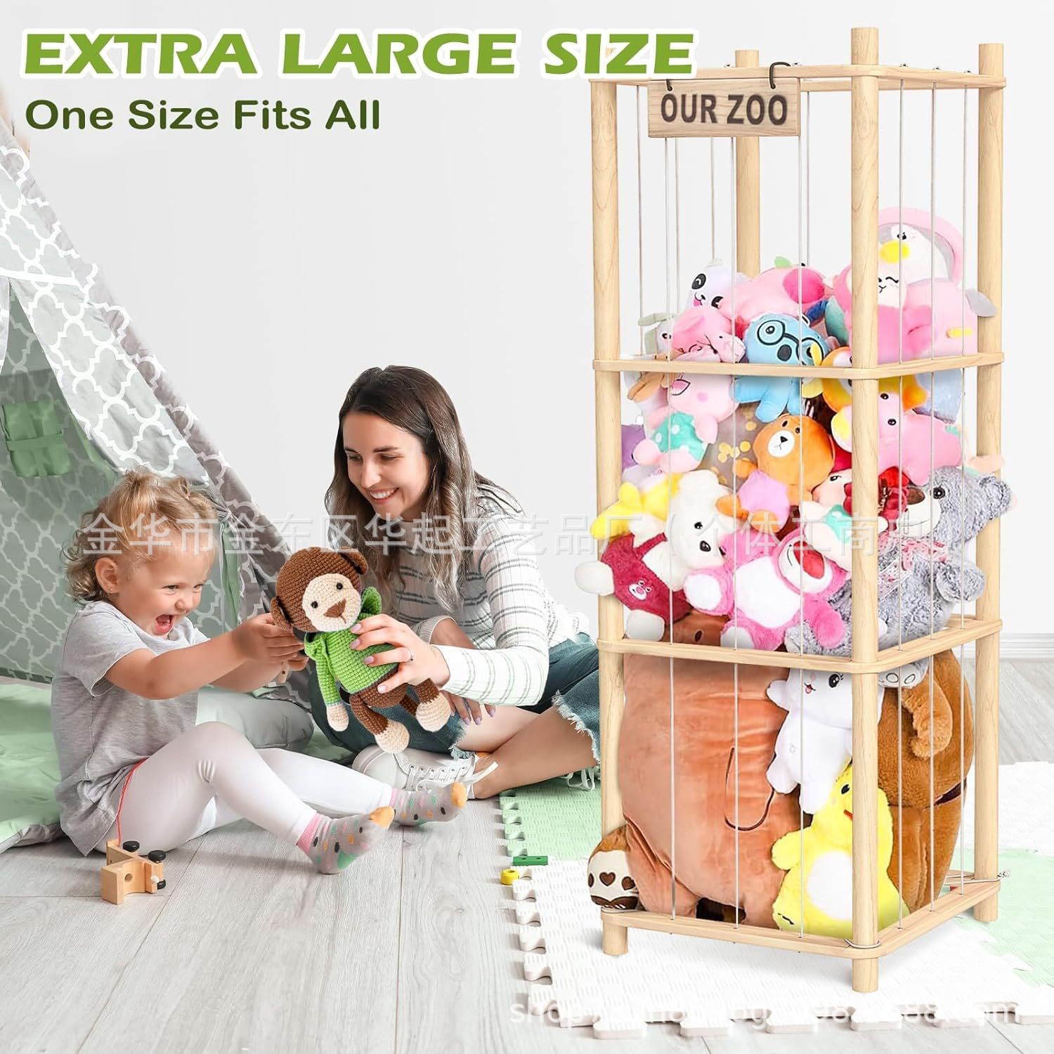 家庭用寝室リビングルーム動物おもちゃ充填ボックス無垢材収納ラック木製ぬいぐるみ収納ラック