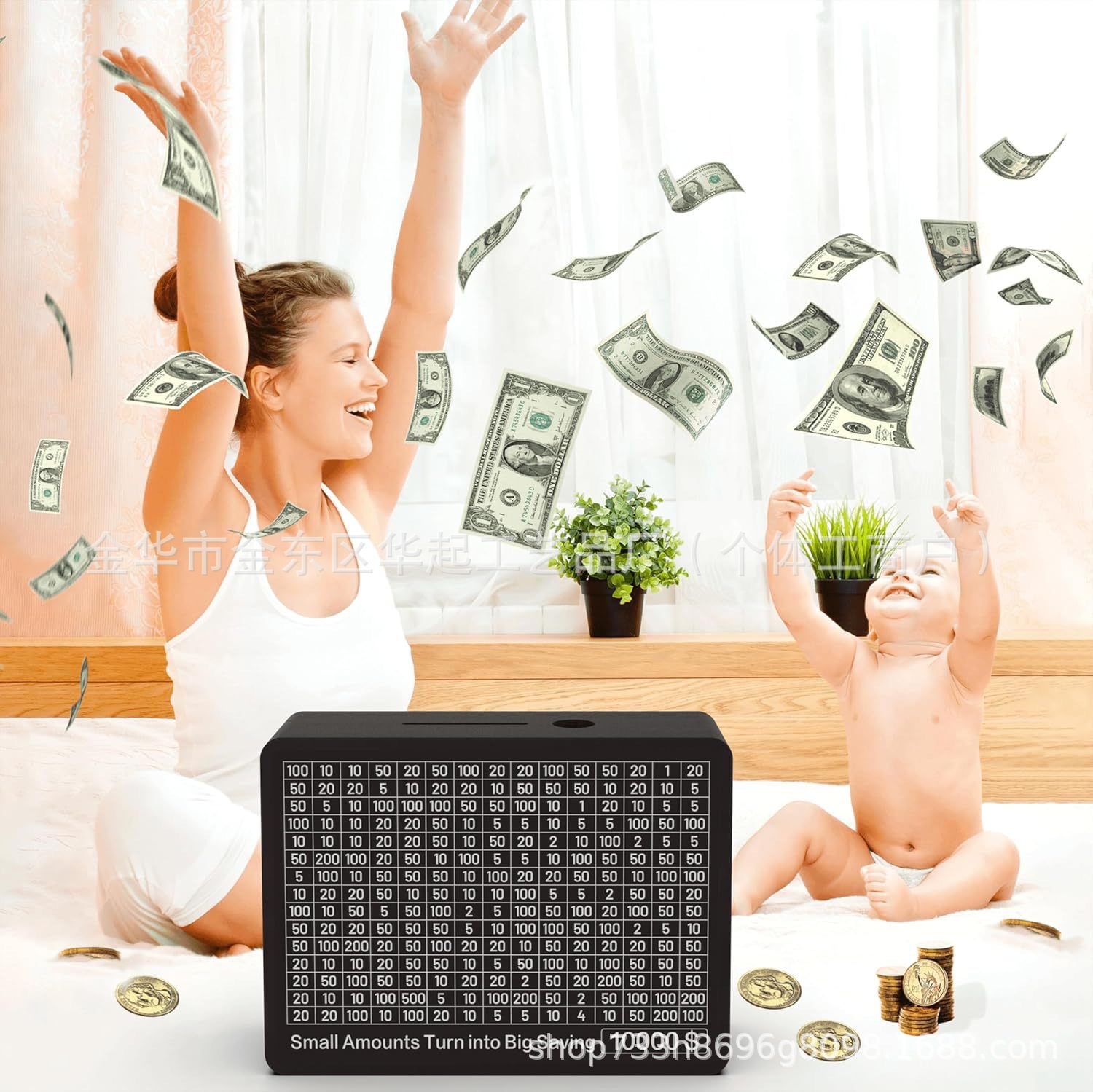 クロスボーダーMoney Box with Counter実木一体式無取付貯蓄目標付き貯金箱