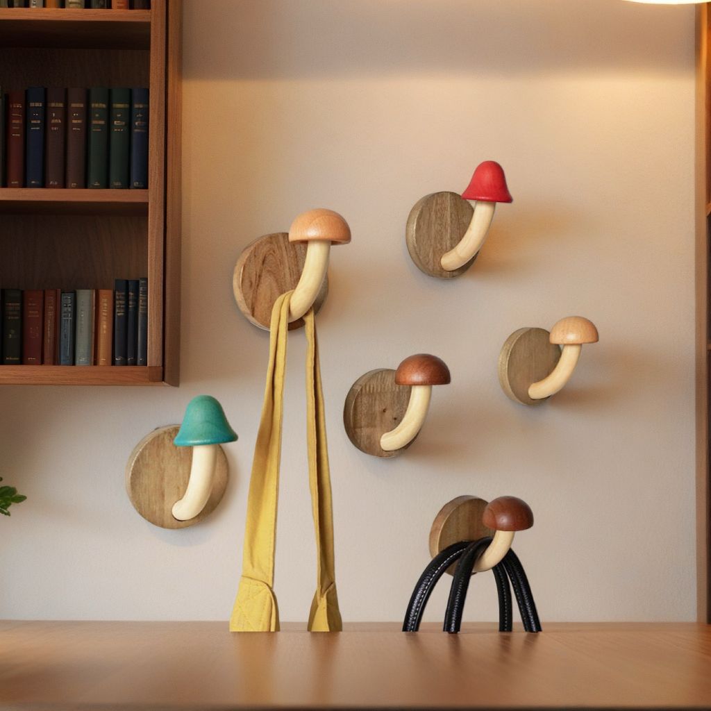 創意新商品の木製キノコの服の帽子のフックは穴を開けないでください。