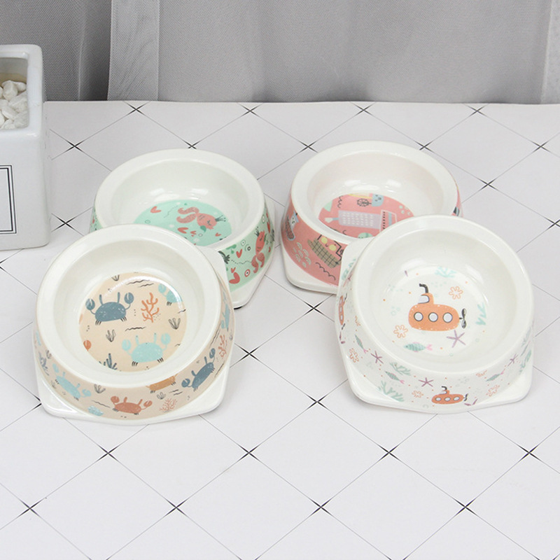 猫の碗のプリントの漫画の猫の食糧の碗の犬の碗の食べ物のたらいの猫の茶碗の4足の碗はペットの猫の碗をひっくり返すことを防ぎます。